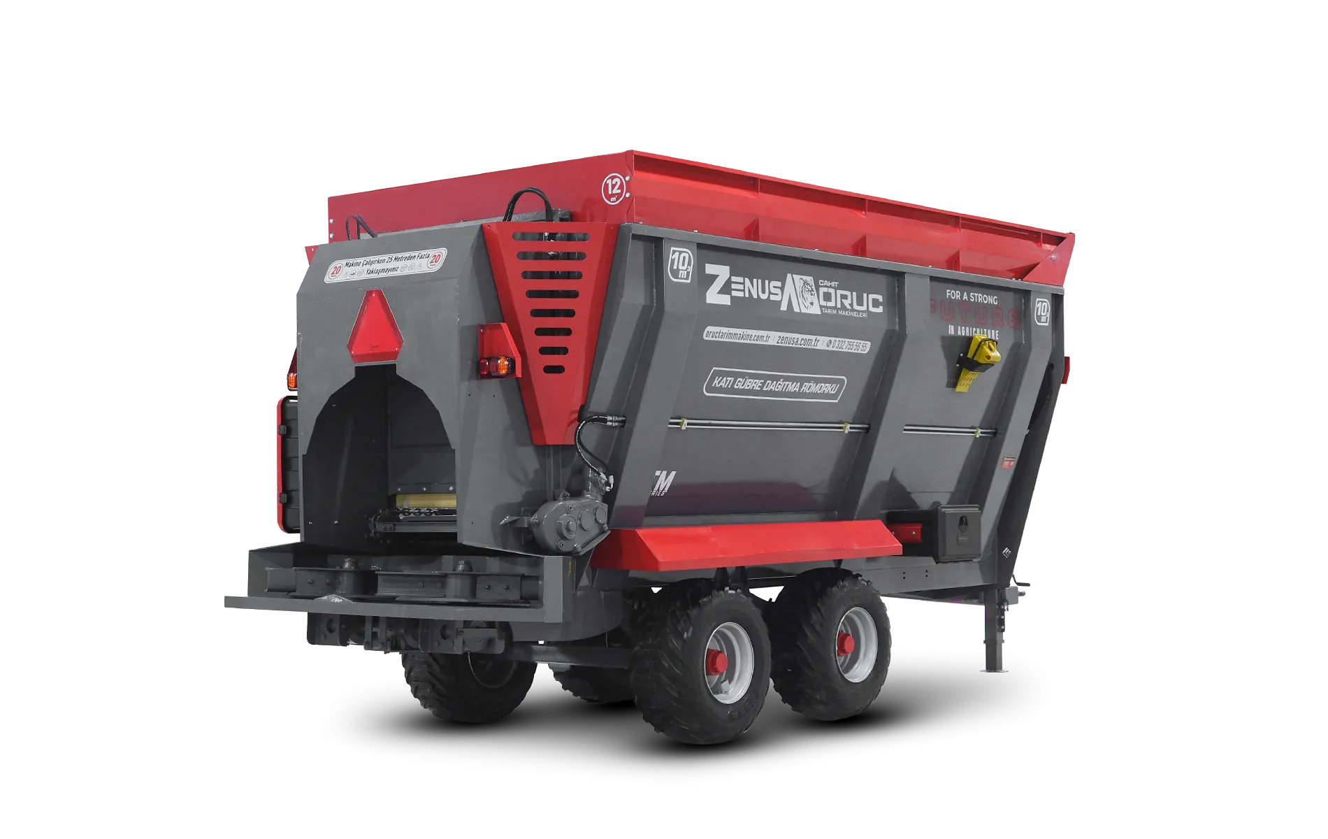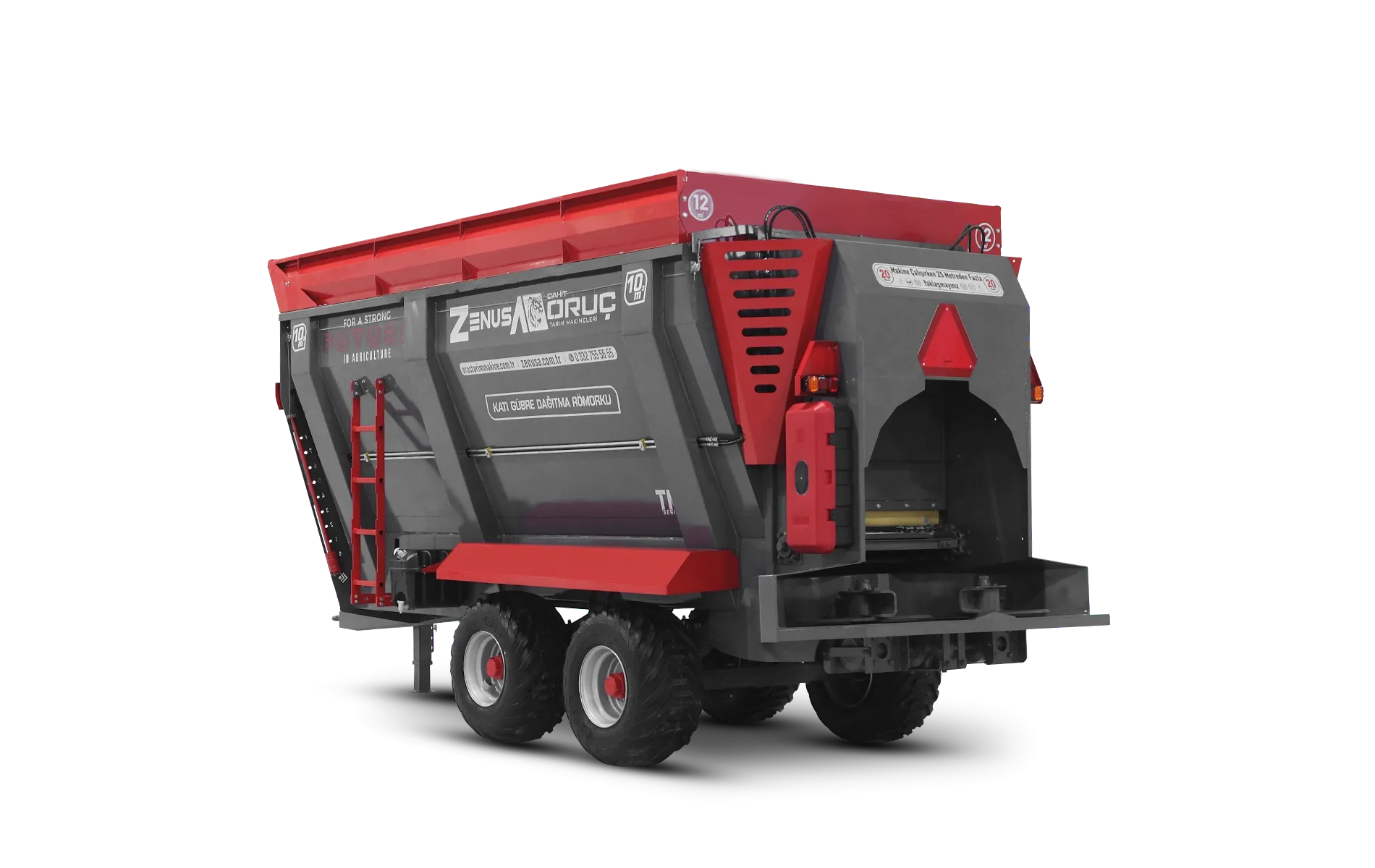 Çift dingil tarla tip katı gübre dağıtma römorkumuz; 8m³, 10m³, 12m³, 15m³, 18m³ ve 20m³ kapasite seçenekleriyle yüksek performans ve güvenilir kullanım sunar. 🚜