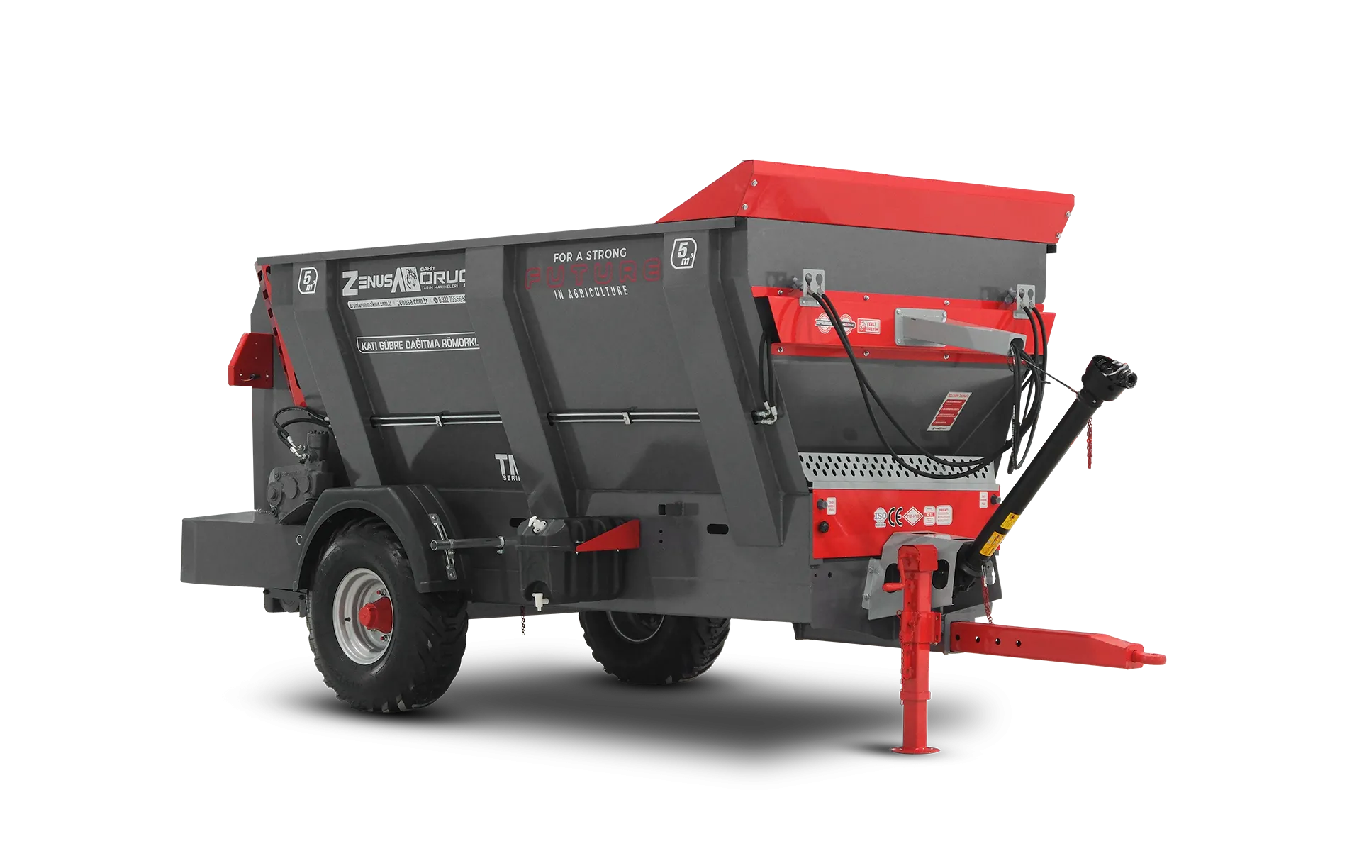 Tek dingil tarla tip katı gübre dağıtma römorkumuz; 5m³ ve 6m³ kapasite seçenekleriyle yüksek performans ve güvenilir kullanım sunar. 🚜